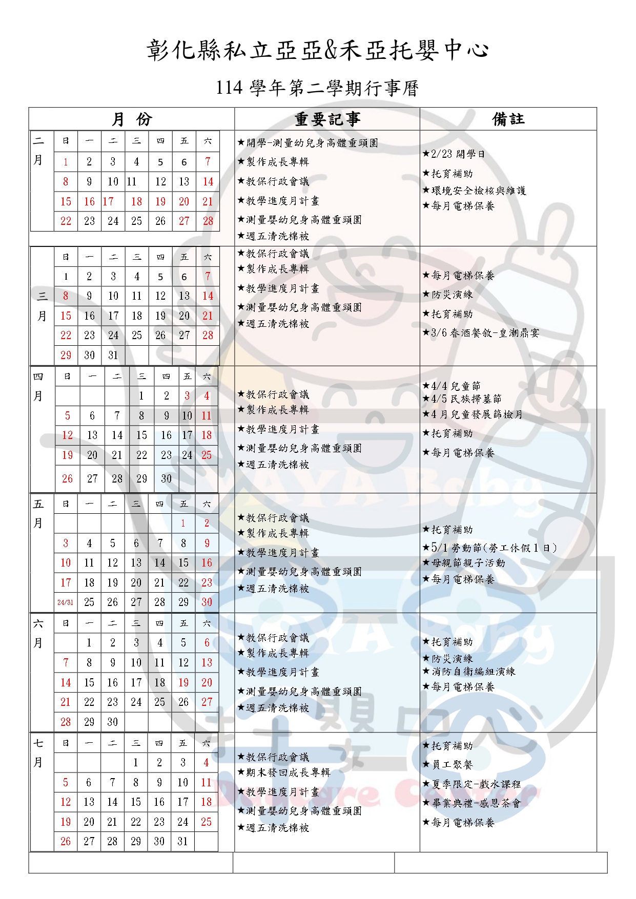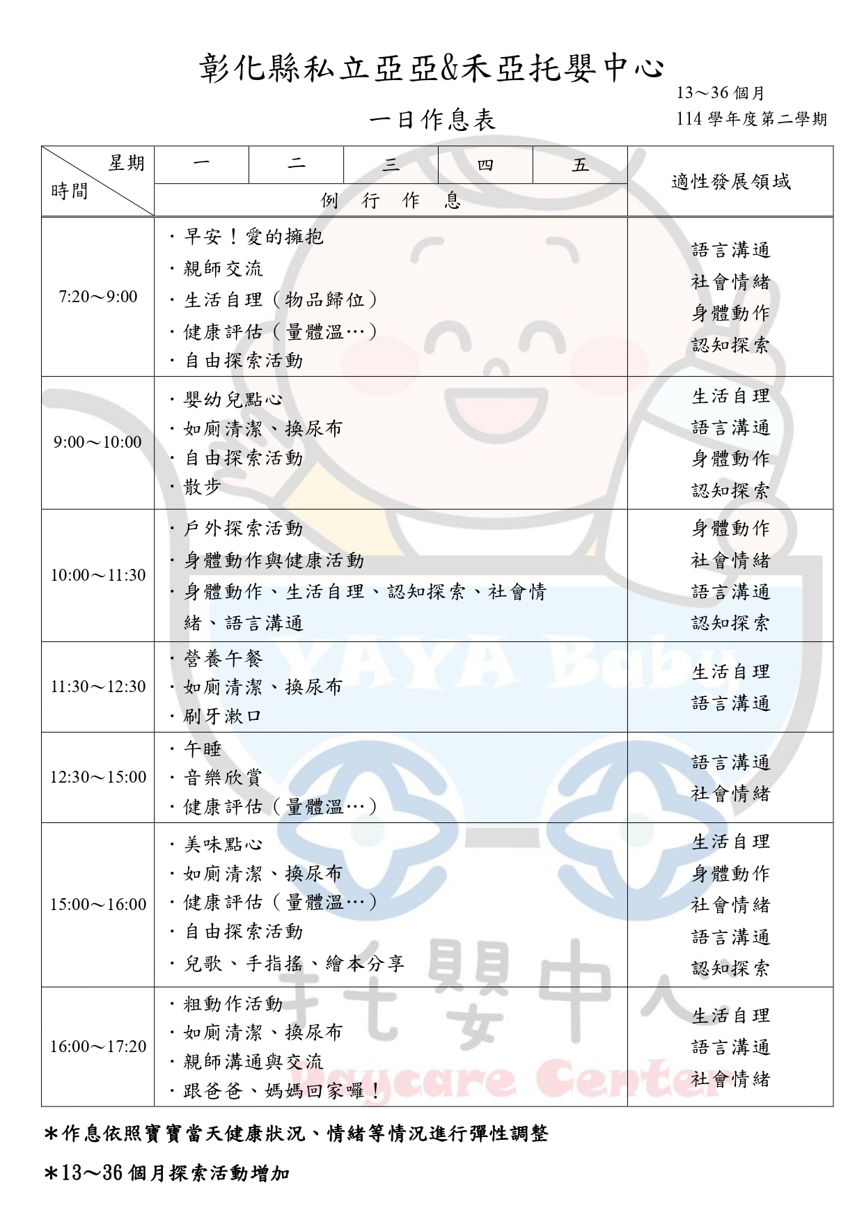 © 彰化縣私立亞亞&禾亞托嬰中心 All Rights Reserved.